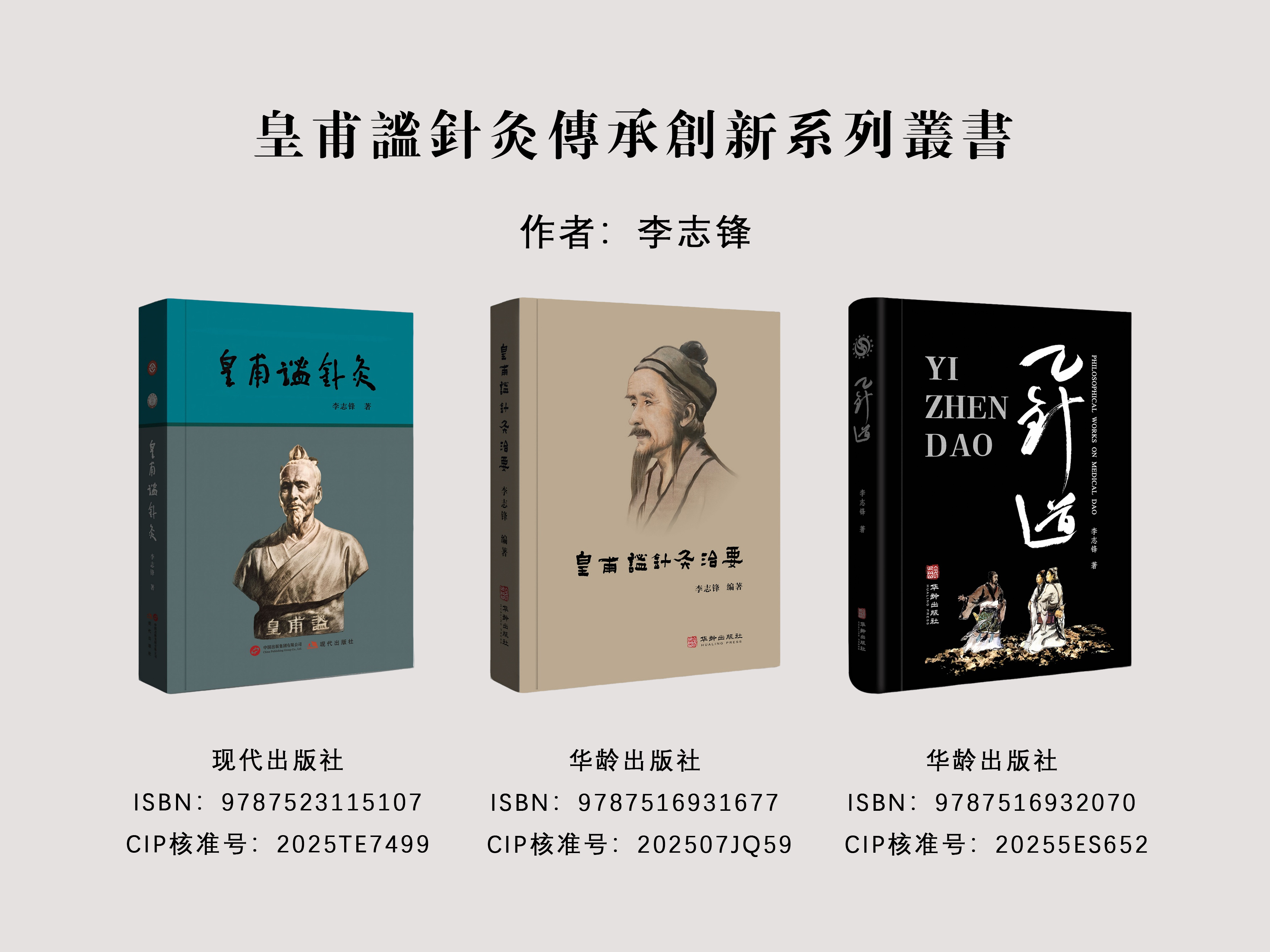李志锋所著《皇甫谧针灸传承创新系列丛书》,已由中央级出版社现代出版社、华龄出版社陆续出版发行,该丛书含《皇甫谧针灸》(ISBN:9787523115107,CIP核准号:2025TE7499)、《皇甫谧针灸治要》(ISBN:9787516931677,CIP核准号:202507JQ59)、《乙针道》(ISBN:9787516932070,CIP核准号:20255ES652)三部作品,从历史梳理、非遗传承、临床实操、理论创新等多维度,助力皇甫谧针灸学术与实践的传承发展。